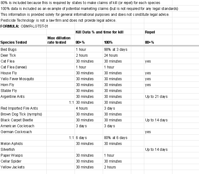 Our broad spectrum kill and repel liquid has the largest data package when it comes to repellency. Along with its great pest killing ability, this formula has data allowing for up to 21 day repellency claims to be made. Our special blend of ingredients allows for this formula to be one of the best all natural insect repellents available.